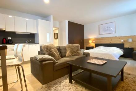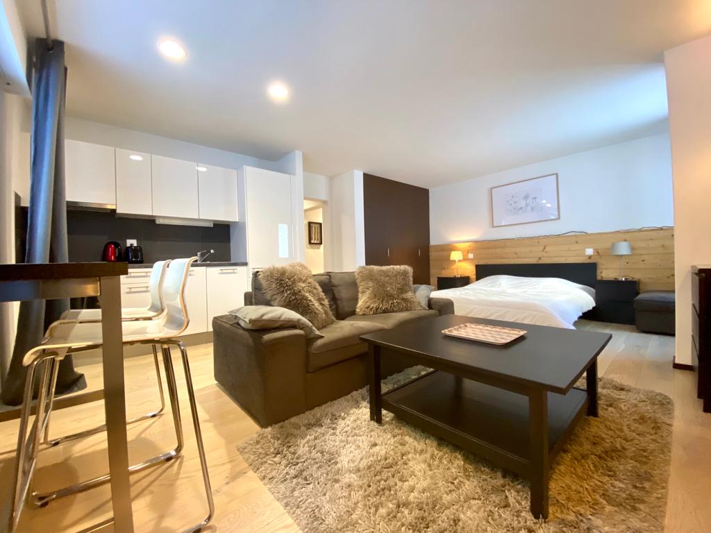 Nous vous proposons un superbe studio équipé et meublé, entièrement rénové, au centre de Crans-Montana, idéal pour un pied-à-terre à Crans-Montana ou pour du rendement locatif.